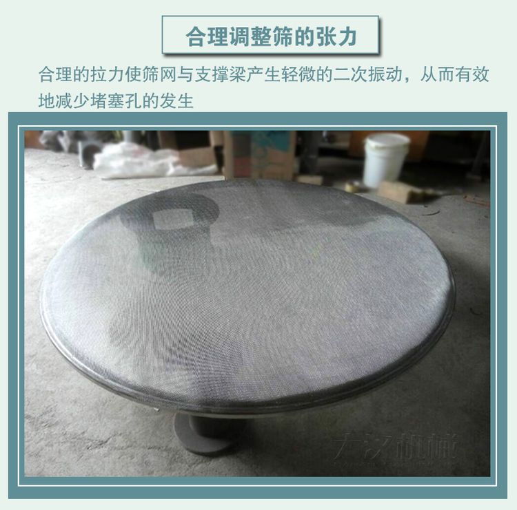 合理調(diào)整篩網(wǎng)拉力是減少篩網(wǎng)堵塞的有效方法。合理的拉力使篩網(wǎng)與支撐梁產(chǎn)生輕微的二次振動,從而有效地減少堵塞孔的發(fā)生。具體方法是使張力鉤成為恒力張力機(jī)構(gòu),即在張力螺栓上安裝彈簧。