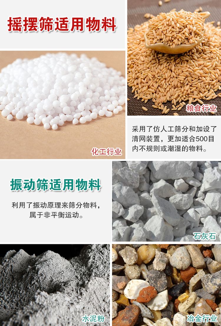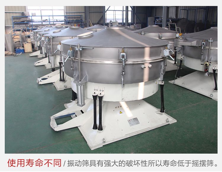 搖擺篩由于采用了仿人工篩分和加設(shè)了清網(wǎng)裝置,所以更加適合500目內(nèi)不規(guī)則或潮濕的物料,克服了普通振動篩的堵網(wǎng)風(fēng)險(xiǎn),而振動篩屬于非平衡破壞暴力運(yùn)動,利用了振動原理來篩分物料,所以有時(shí)還會破壞物料,所以對于一些顆粒狀結(jié)晶焦脆物料,建議使用搖擺篩,其篩分精度可達(dá)95% 以上。