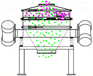 (2-2)直排篩工作原理:該系列篩機是利用兩側臥式振動電機為激振源,振動電機置于機體一側,物料進入設備內部后,受振動源作用力在篩面上做橢圓運動軌跡.快速并往復完成過網動作的同時,振動力能往并連續的對物料產生剝離、打散及重組的作用,從而使物料快速過網,不能過網物料則按設備運動軌跡由篩上排料口排出,完成篩分作業過程;