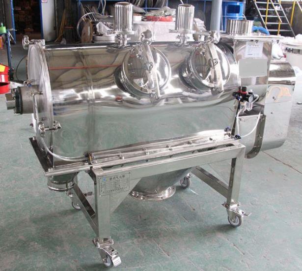 臥式氣流篩篩網(wǎng)為圓筒狀,置于機體內(nèi),物料通過螺旋輸送系統(tǒng)后,和氣流混合、霧化進入網(wǎng)筒內(nèi);
